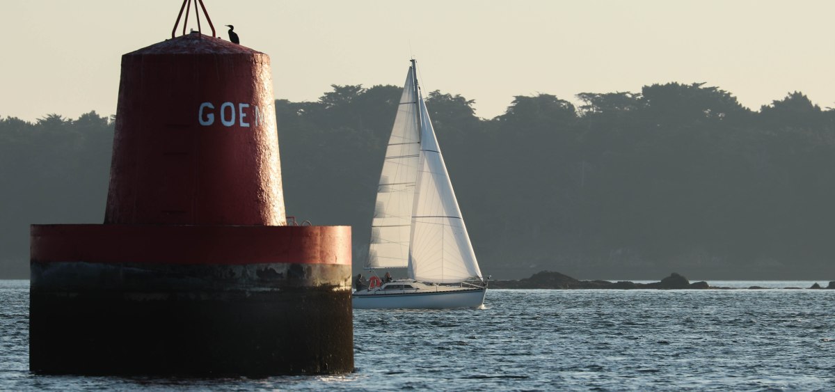 La tourelle Goemorent – qui se serait appelée « goemonent » avant et qui est écrite « Goëmorent » sur certaines cartes – balise l’entrée de la Rivière d’Auray devant Locmariaquer. On la laisse à tribord qand on va vers l’océan. A babord quand on en vient.