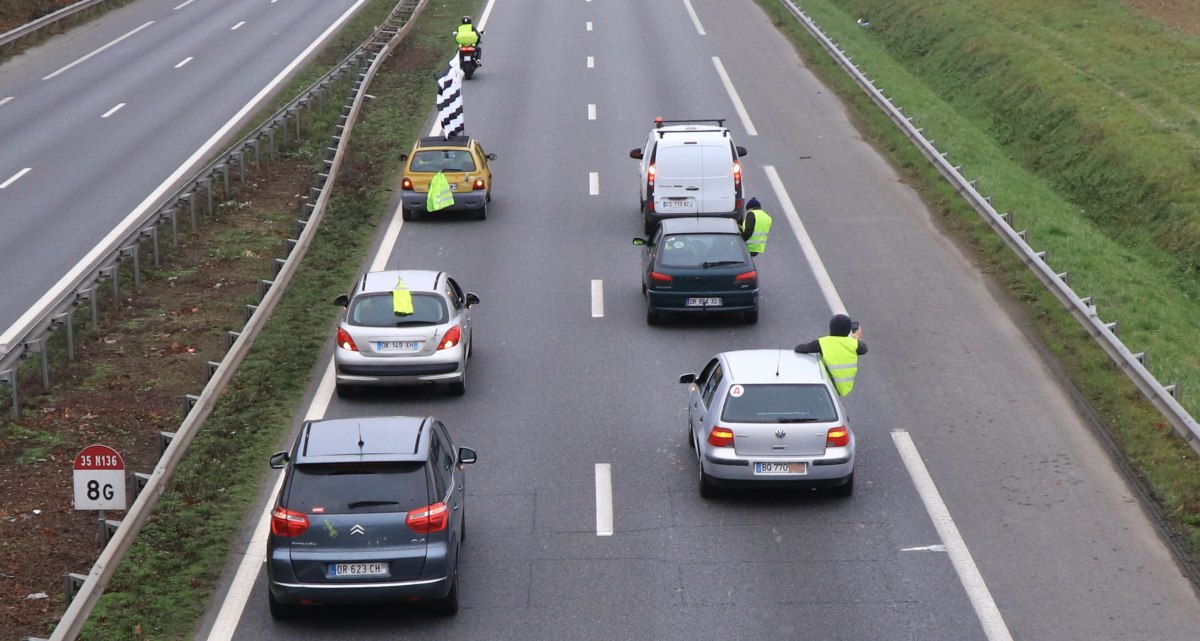 Donc la rocade de Rennes est inhabituellement tantôt vide tantôt occupée de groupes de véhicules, manifestants en tête suivis d’autres – solidaires en apparence – qui ont mis un gilet jaune sur le tableau de bord puis de tous ceux qui n’arborent aucun signe extérieur de sympathie. Certains pavoisent le gwenn a du et filment au portable en s’asseyant sur le rebord des portières.