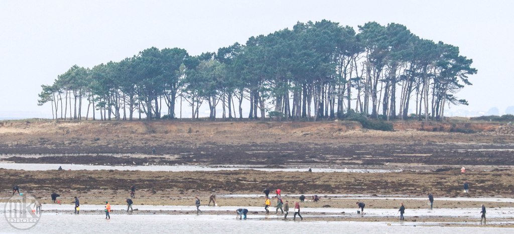 Ce samedi la marée était basse vers midi et son coefficient était de 112, ce qui est une très grande marée. La mer se retirait donc particulièrement loin, découvrant des rochers accessibles juste quelques jours par trimestre.. les pêcheurs à pieds étaient donc au rendez-vous et les crabes ne se doutaient probablement de rien..