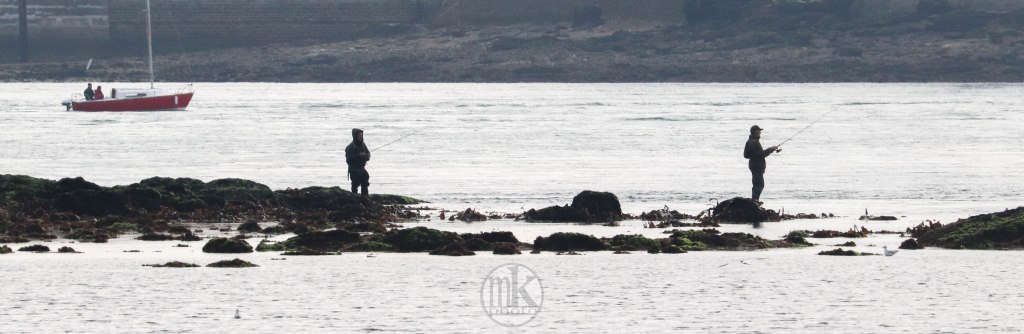 11h12. Les pêcheurs à la ligne sont aussi présents, espérant pêcher les bars qui apprécient les zones de forts courants, or le Golfe qui se vide encore à cette heure est comme un fleuve puissant.
