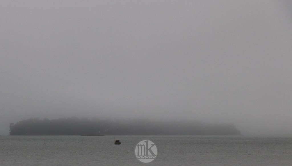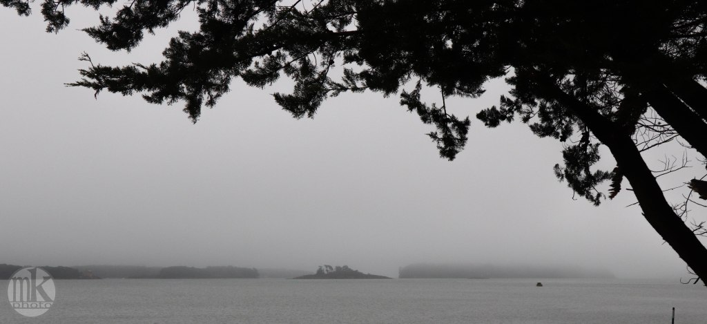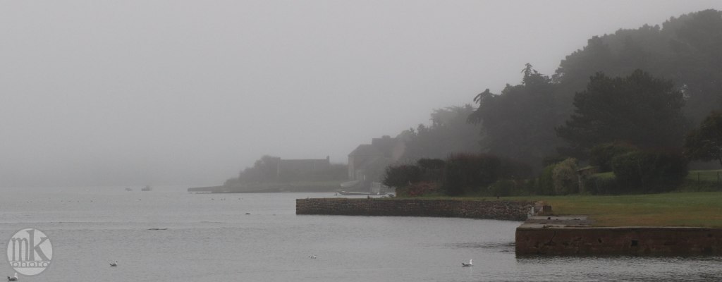 Seul le Grand Huernic n’est pas coiffé de brume, devant les Sept Îles et er Runio
