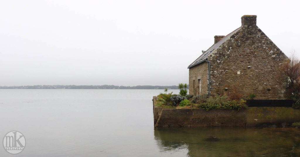 Cette balade en cette fin d’après-midi brumeuse de fin janvier était bien agréable : dans ce paysage nimbé de vapeur fraiche les sons étaient ouatés. Nous n’avions vu que 3 ostréiculteurs finissant leur journée. Cette petite maison, parmi d’autres, fait partie du paysage. Approche une femme, arrivant par la grève. Elle me demande de loin, sans dire bonjour, « vous faites des photos ? Vous prenez quoi ? ». Je lui réponds d’un geste ample encadrant largement le paysage. Elle dit, un peu plus fortement en passant devant moi à une dizaine de mètres : « Ne prenez pas ma maison en photo ! ». Surpris, je lui demande pourquoi. Elle : « ça vous plairait qu’on prenne votre maison en photo ? ». Je réponds « je crois que ça ne me dérangerait pas …si j’en avais une ». Et elle a continué vers cette maison qui était donc la sienne. L’intervention de cette femme est une fausse note dans ce moment de tranquille quiétude. C’est la seconde fois qu’on est apostrophés dans ce coin par des personnes plutôt hostiles. La 1ère fois c’était à côté, à Fetan Stirec : un type nous avait dit que là où on garait notre voiture un de ses voisins garait en général la sienne. Depuis, quelqu’un a mis, à l’entrée de cette impasse, un panneau routier artisanal « demi-tour impossible », ce qui est faux. Il y a parfois ici au minimum une méfiance vis-à-vis du promeneur ; beaucoup de gens n’aiment pas que des « touristes » viennent là où ils vivent. Cela ne date pas d’aujourd’hui et n’est pas spécifique au coin. Les expressions pour qualifier les touristes sont nombreuses : dans les années 60 c’était les « pattes jaunes » (en breton, pour ne pas qu’ils comprennent, en référence aux « bottes jaunes » qui étaient alors souvent portées par les visiteurs). Depuis les années 70 c’est « les parigots ». J’ai un cousin « germain » qui s’est fait un jour engueuler, pour, encore, une histoire de place de parking . La personne lui dit : « et en plus vous êtes 78 ! ». Mon cousin a un prénom breton et son nom est « le Breton », son père ayant quitté, comme beaucoup, sa campagne de centre-Bretagne dans les années 60 pour travailler dans la région parisienne.. Est-ce la trace actuelle d’une rancœur ancienne, plus ou moins transmise de générations en générations, qui vient du fait que la Bretagne s’est sentie méprisée, dont la langue a été interdite pour unifier la France, par l’Etat français, c’est-à-dire, dans notre beau pays de France, Paris ? Je ne me sens pas un touriste, étant né à 40 km de Locmariaquer. Je n’y suis pour rien mais mes ancêtres vivaient dans la région de Lorient depuis au moins le XIXè siècle. Le vote pour le FN fait de bons scores sur la frange littorale du Morbihan. Cela ne s’explique pas seulement par le fait que Jean-Marie le Pen est natif de la Trinité s/Mer et y a encore une maison. .Je viens régulièrement depuis plus de 50 ans à Locmariaquer. C’est un peu mon second pays d’enfance. Beaucoup de gens en Bretagne vivent grâce à leurs « échanges » avec l’extérieur. Mais certains préféreraient vivre du tourisme sans les touristes. C’est un état d’esprit qui ne pense pas plus loin que le bout de ses préjugés. Cela illustre en partie un paradoxe qui n’est pas spécifiquement breton mais, en tant que « breton », que je trouve assez honteux. Cette dame est la propriétaire de cette maison juste au bord de l’eau qui sera peut-être submergée fréquemment dans 20 ans (la maison, pas la dame), comme notre maison familiale à 1,5 km de la sienne. Elle trouve que je viens l’importuner et elle a raison : je l’importune et je poste une photo de sa maison. Elle trouve peut-être qu’il y a trop de gens qui, passant sur le sentier littoral public qui a été créé là ces dernières années, regardent voire prennent en photo sa maison, ce qui est légal (s’il n’y a pas d’exploitation commerciale de l’image). Pourquoi ne veut-elle pas que des gens fassent des photos de sa maison ? Y a-t-il quelque chose à cacher ? Serait-ce un ancien bâtiment ostréicole qui ne devrait pas être une maison d’habitation ? Le système de traitement des eaux usées ne serait-il pas aux normes ? Non seulement cette personne – se sentant dérangée – m’a aussi un peu dérangé ce jour-là mais elle m’importune à nouveau car revoir cette photo a aussi brouillé l’article paisible et pacifique que je voulais faire.