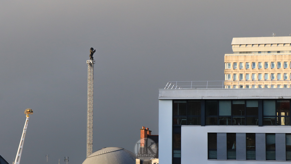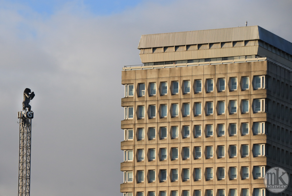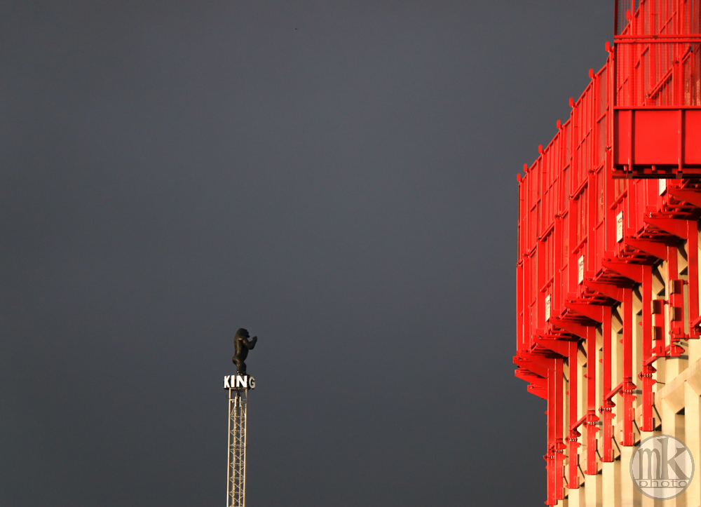 Ayant foi dans l’instinct, l’intelligence et la sagesse des bêtes, je pense que King Kong hurle parce qu’il défit la tour et lui crie qu’il grimpera à son sommet comme il – son grand-père ? – l’a fait en 1933 sur l’Empire State Building, et qu’il a bien vu que cette construction ridicule, humaine.. est issue du mouvement architectural nommé « brutalisme » et qu’il n’est pas dupe que c’est une provocation face à lui, le Roi King ( ou l’un de ses descendants).. et qu’il voit rouge !
